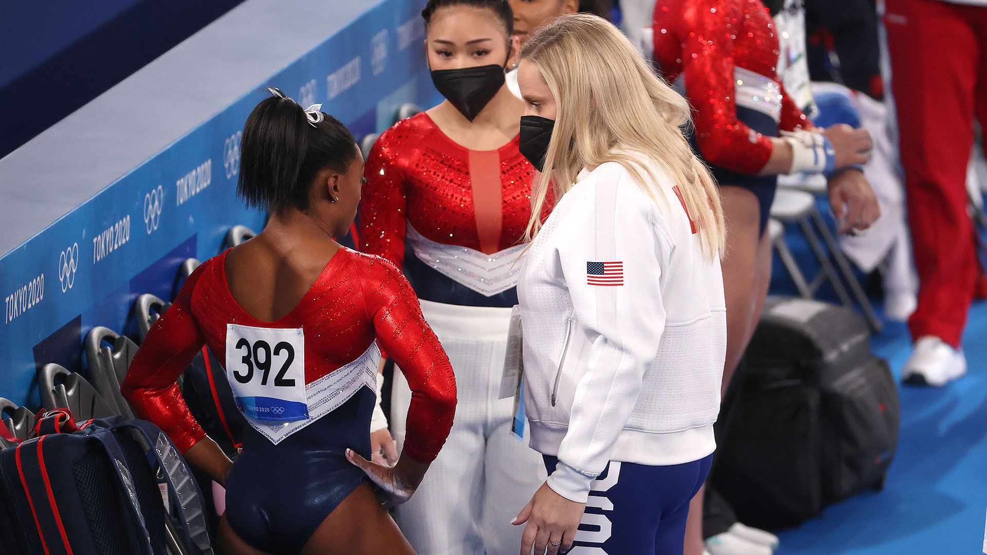 The radical courage of simone biles's exit from the team usa olympic finals biles's decision not to compete on tuesday is, to many spectators, a heartbreak. Simone biles pulls out of women's gymnastics final, lets world know it's ok to not be ok. Biles competed in team usa's first rotation on vault, bailing out of her amanar and scoring a 13.766 for a 1.5 twist. Biles appeared to slip and nearly landed on her knees trying to land. Ronda rousey understands high pressure competition and she witnessed simone biles pull out of the overall gymnastics competition in the olympics as well.